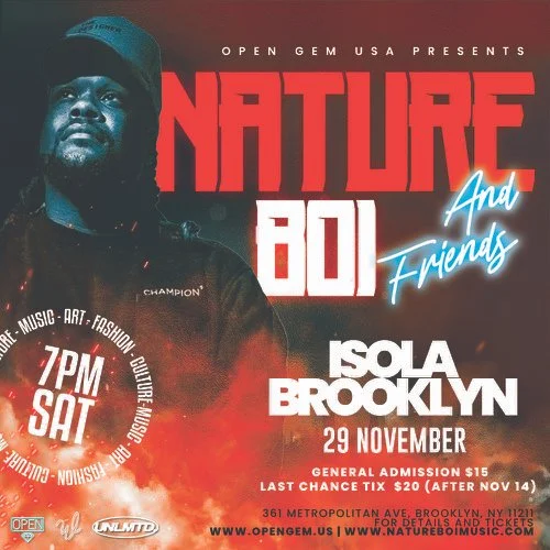 DMV multi-talent Nature Boi steps into Brooklyn not just to perform, but to curate an experience. Known for blending production, DJing, and cultural direction with a rare level of intention, Nature is bringing his creative universe to Isola for one unforgettable night.